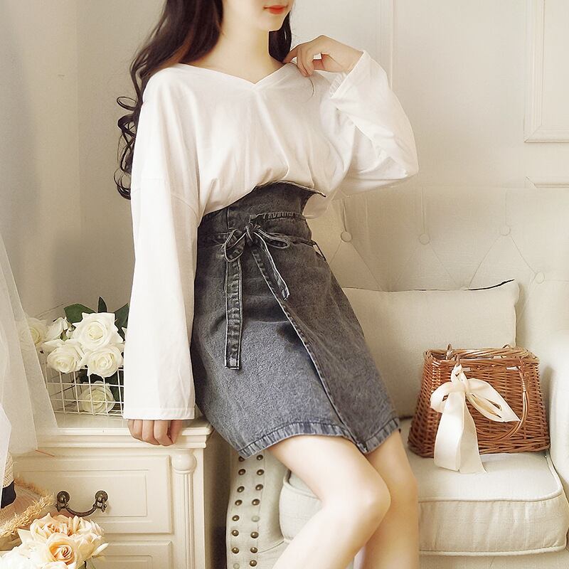 デニム ジーンズ Vネック シャツ スカート レースアップ アンサンブル 森系甘め9975049 | popsite3 ~cute~(レディース かわいい 可愛い ガーリー フェミニン 甘め アパレル服 アクセサリーなど)