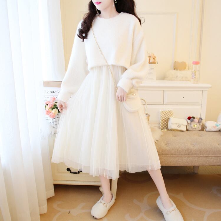 シンプル ラウンドネック レース シースルー チュール オーガンジー スカート ワンピース かわいい5554973 | popsite3 ~cute~(レディース かわいい 可愛い ガーリー フェミニン 甘め アパレル服 アクセサリーなど)