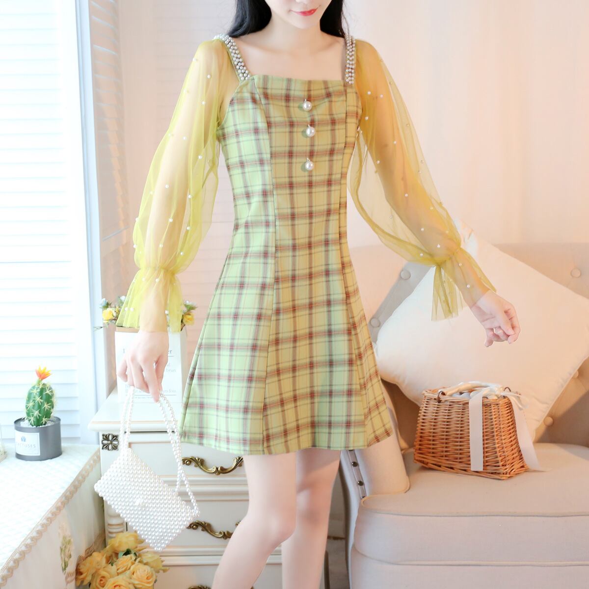 格子柄 チェック レース シースルー チュール オーガンジー ワンピース 森系甘め7912390 | popsite3 ~cute~(レディース かわいい 可愛い ガーリー フェミニン 甘め アパレル服 アクセサリーなど)