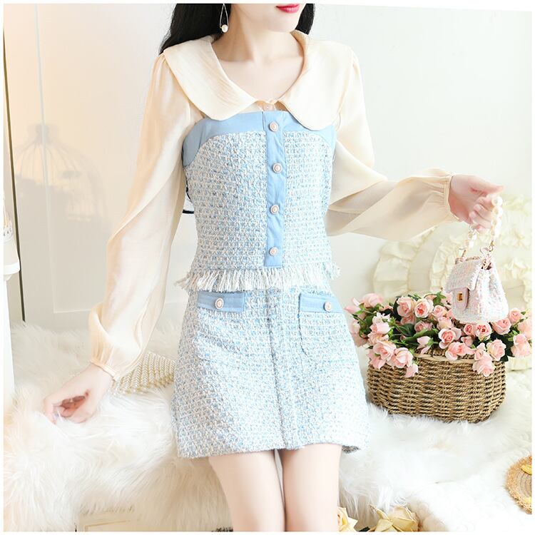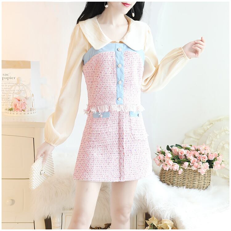 ツイード ツーピース アンサンブル 丸襟 セットアップ 森系甘め7642917 | popsite3 ~cute~(レディース かわいい 可愛い ガーリー フェミニン 甘め アパレル服 アクセサリーなど)