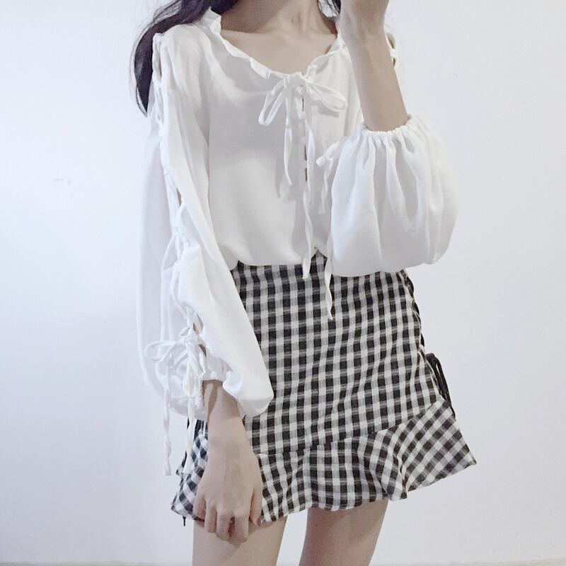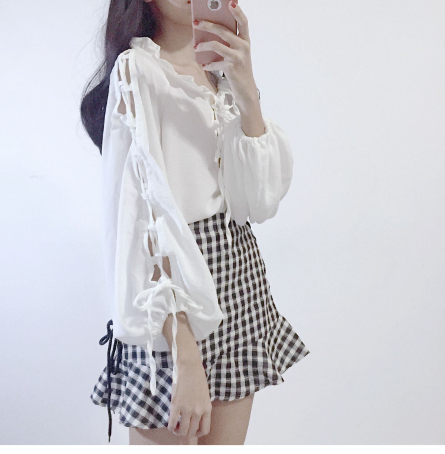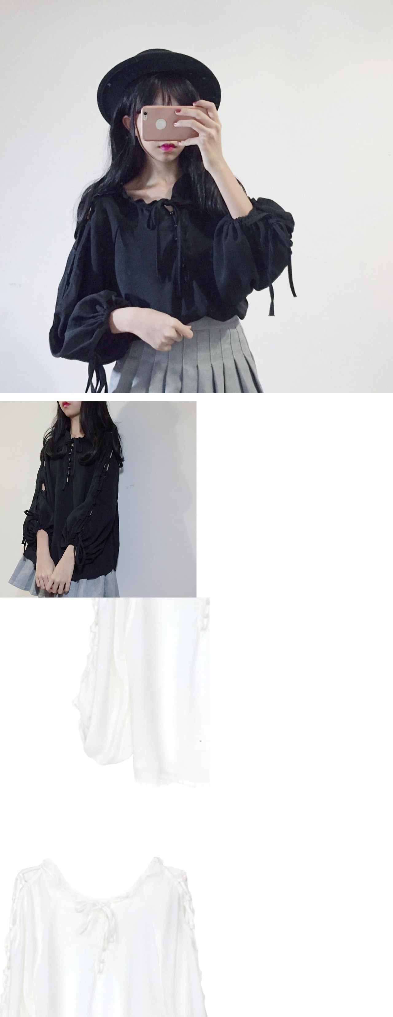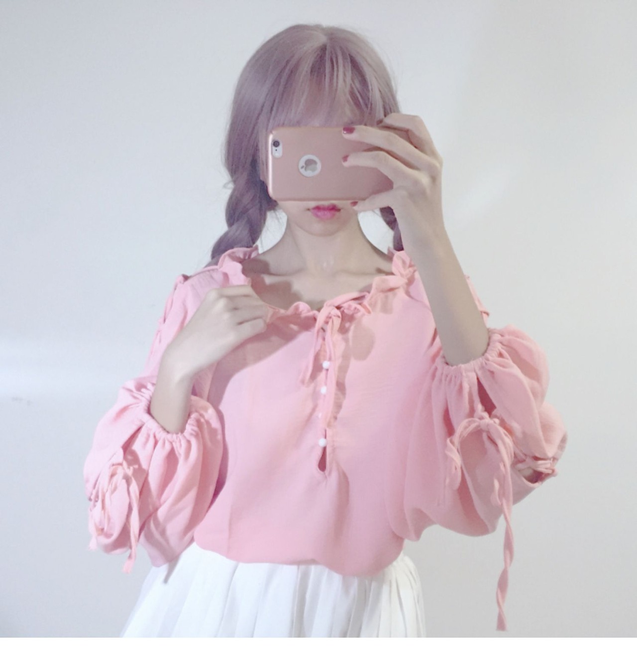 レースアップ リボン フリル バルーンスリーブ バルーン袖 パフスリーブ ブラウス ガーリー7044560 | popsite3 ~cute~(レディース かわいい 可愛い ガーリー フェミニン 甘め アパレル服 アクセサリーなど)
