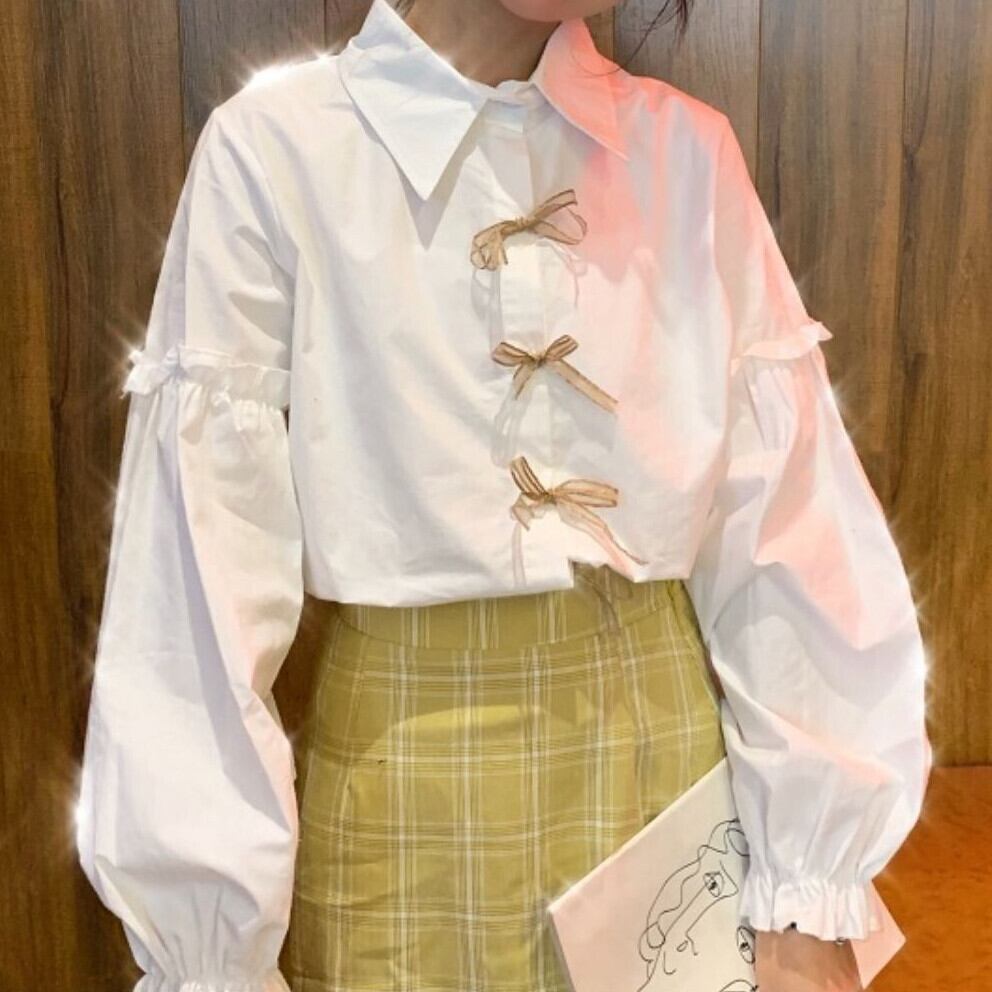 リボン カジュアル ガーリー おしゃれ ワンポイント シャツ ブラウス ガーリー2368608 | popsite3 ~cute~(レディース かわいい 可愛い ガーリー フェミニン 甘め アパレル服 アクセサリーなど)