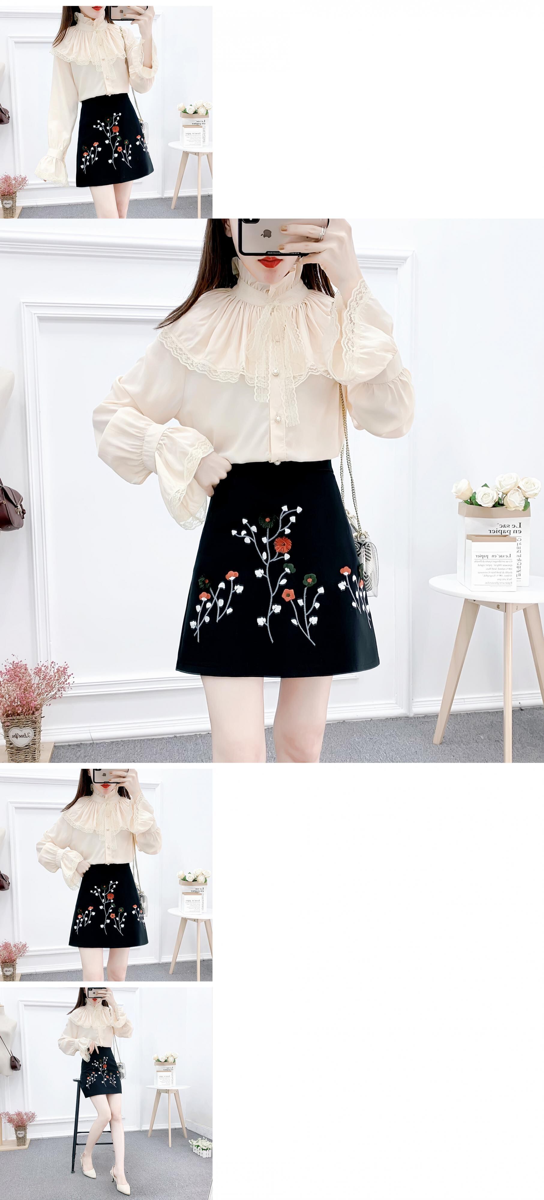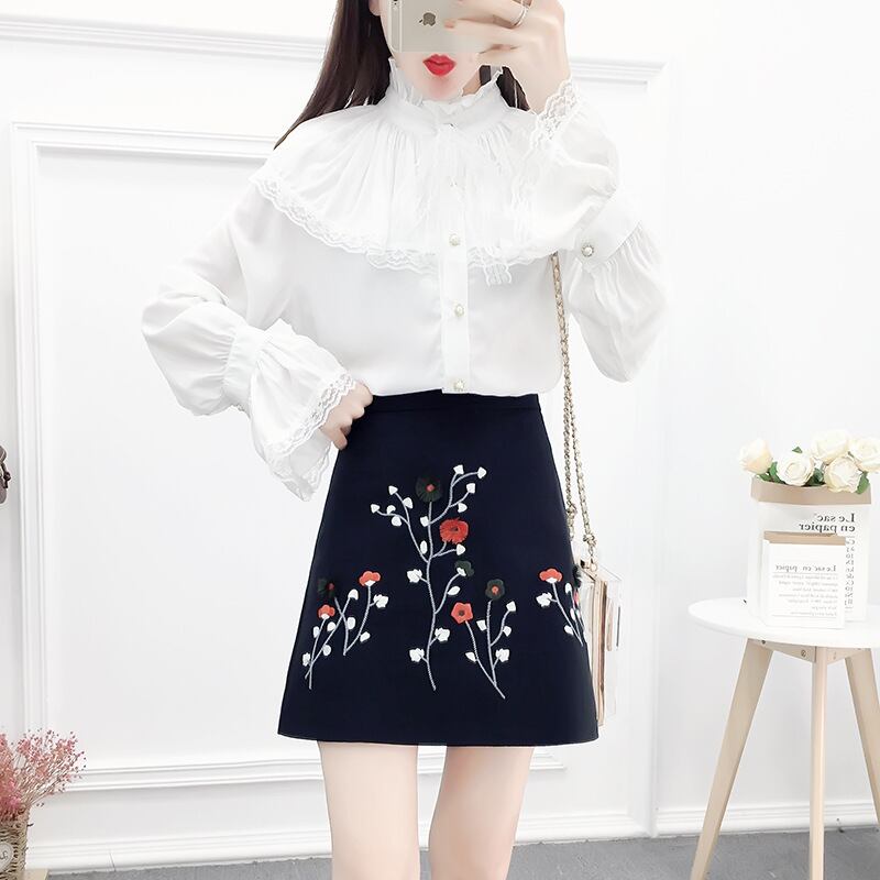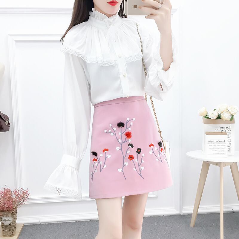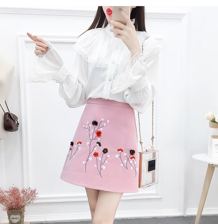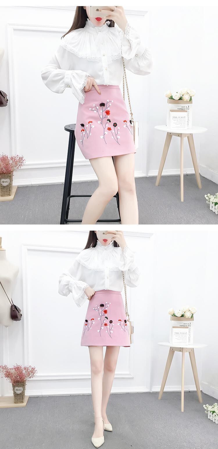 色:ホワイトトップ+ピンクのスカート,白いブラウス,アプリコットトップ+ブラックスカート,フリーマッチ