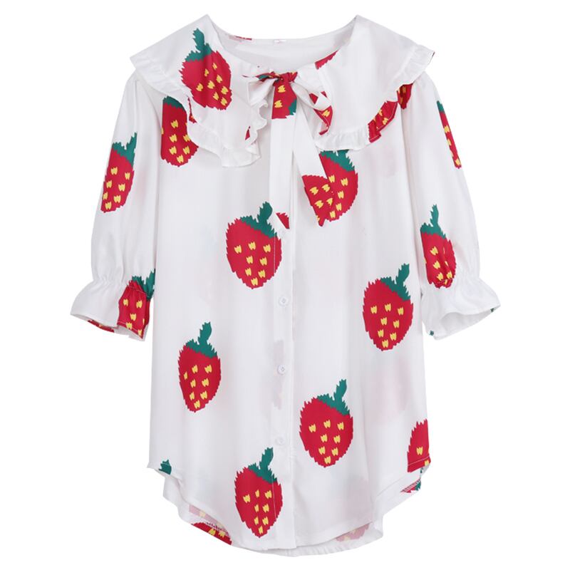 丸襟 いちご イチゴ 苺 ストロベリー シャツ リボン プリント トップス 女性 レディース ガーリー9184848 | popsite3 ~cute~(レディース かわいい 可愛い ガーリー フェミニン 甘め アパレル服 アクセサリーなど)